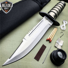 9.5" Tactical Hunting Army Rambo Fixed Blade Knife Machete Bowie w Survival Kit