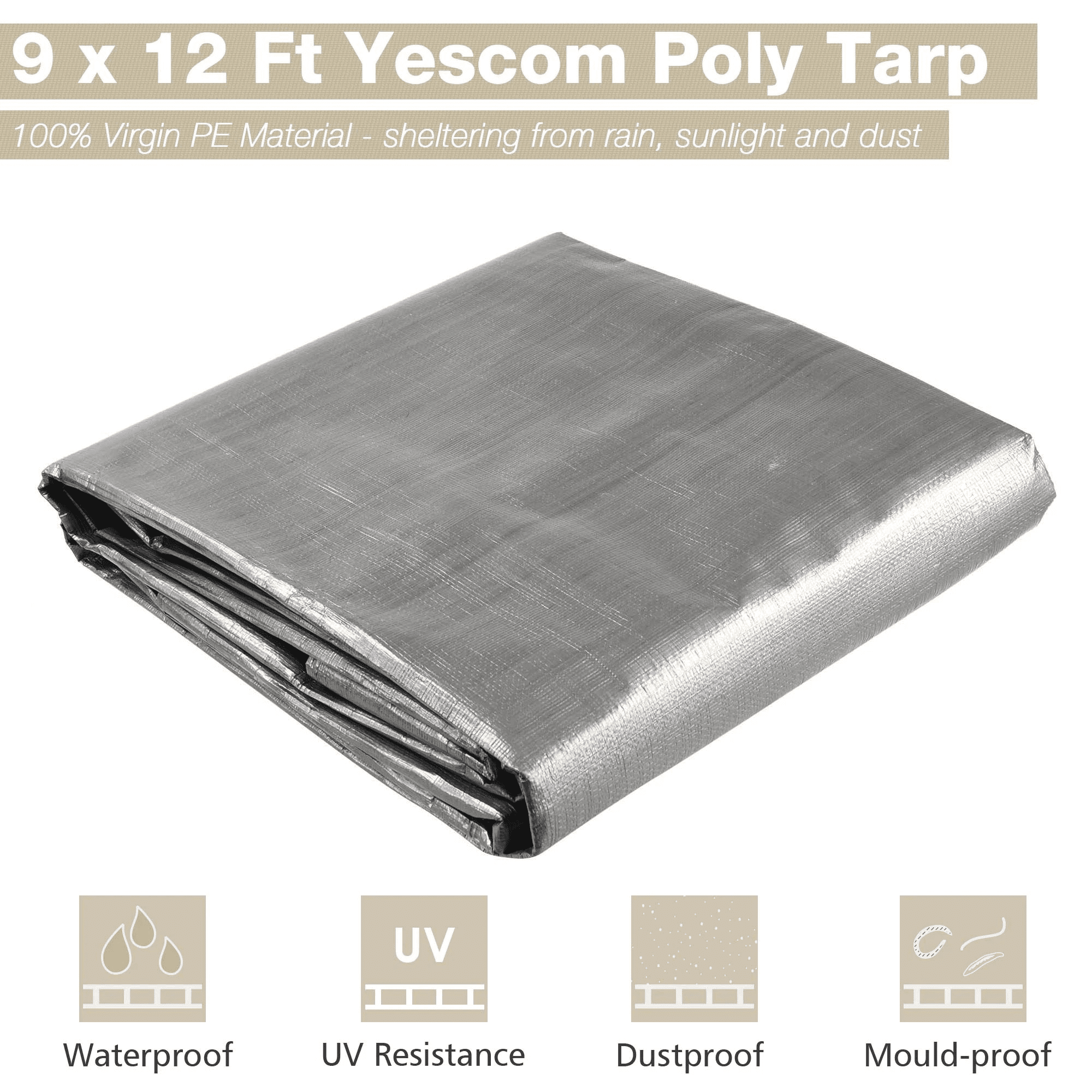 - Strong & Durable Shelter - 9 x 12 ft silver and black poly tarp forms a strong and durable shelter from sunlight; rain and dust; cooler underneath in the summer; Long lifetime up to 3 years; it features good ability of anti-aging for long-time use